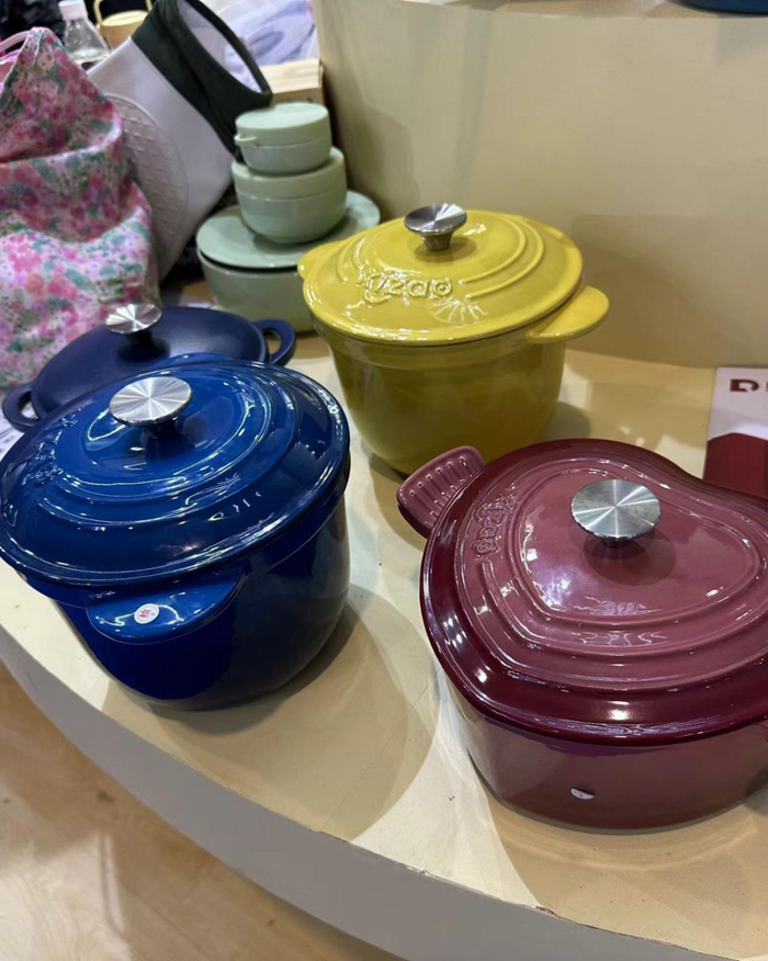 有的消费者为珐琅锅实用性能买单,有的则被其外貌“圈粉”。正在店内挑选珐琅锅的刘女士告诉记者,她去年用商场的积分兑换了该品牌的一个盘子。“每次拿起这个薄荷绿色的盘子总想着搭配一个同色系的锅,于是今天来店里特意挑选同色系的珐琅锅。铸铁锅加上彩色的珐琅和锅盖上精美的花纹,让做饭这件事也变得时尚起来。”刘女士说道。一旁同行的王女士也表示,“马卡龙颜色的珐琅锅简直美出了新高度,清新的配色让人感觉像在花园里做饭一样,即使是粉色的锅也不觉得颜色浮夸。”