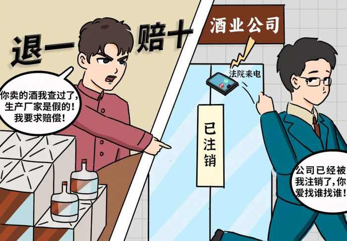 审理法院认为,刘某提供的证据可以证明其通过网络购物形式向某酒业公司购买案涉白酒,双方形成买卖合同关系。案涉白酒作为预包装食品,其标签标示的生产厂家及生产许可证号均为虚构,属于不符合食品安全标准的食品。某酒业公司已被其唯一自然人股东钟某注销。故判决钟某向刘某退还价款并支付价款十倍的赔偿金。