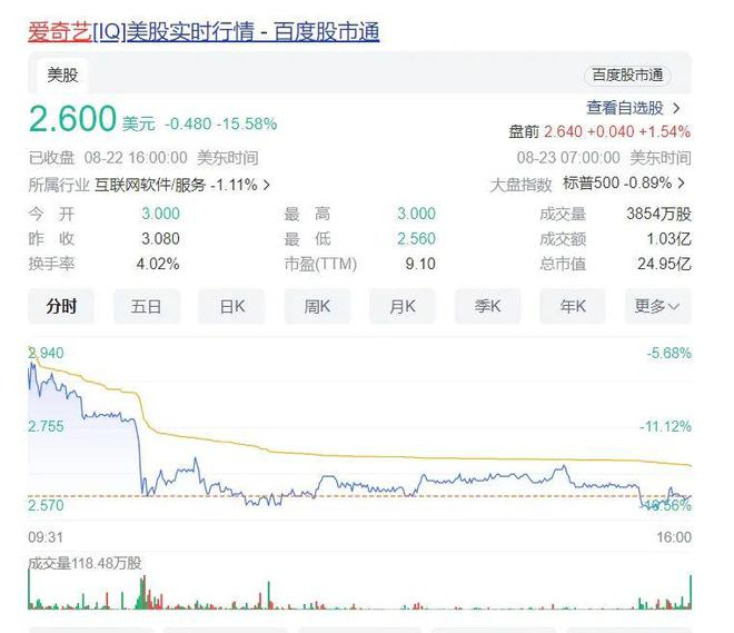 财报发布当日,爱奇艺股价大跌15.58%,当日收盘价2.6美元。相比五月中旬的高点,爱奇艺的市值已经缩水约一半。