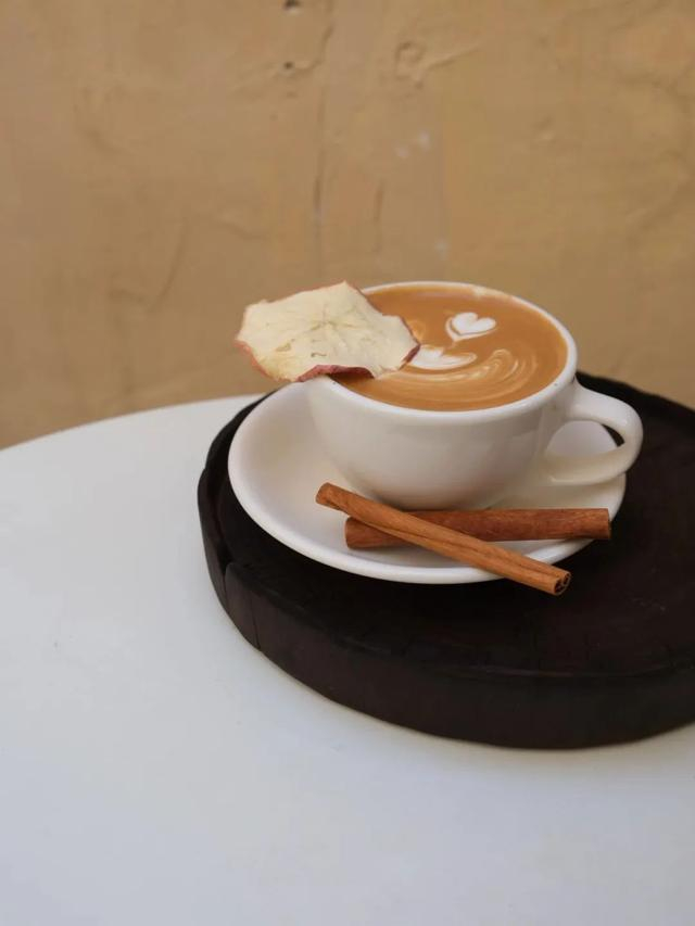 苹果肉桂拿铁创意十足,肉桂的温暖馥郁与苹果的清新爽润相互映衬,恰如其分地展现了初秋季节的温润气息。