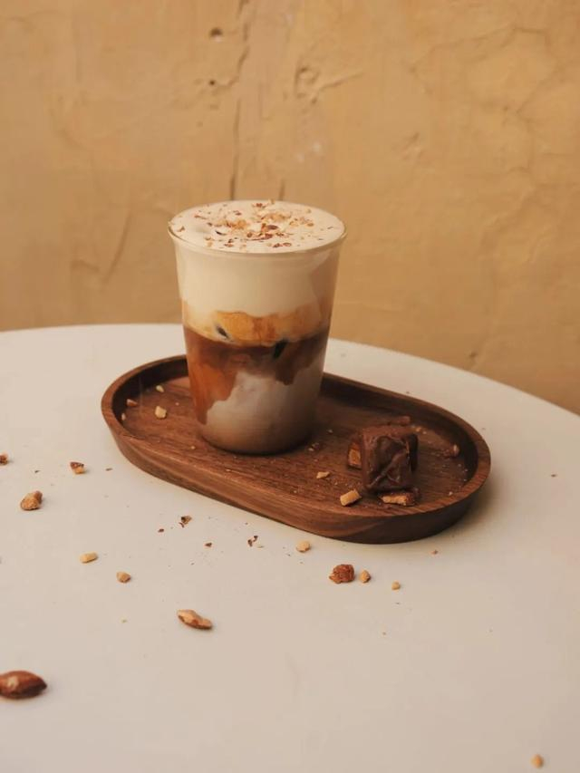 在此次秋季新品咖啡中,花生浮云拿铁备受好评,成为了店内销量冠军。棕色的花生碎末点缀在奶油泡沫上,浓香四溢,口感丰富,回味无穷。