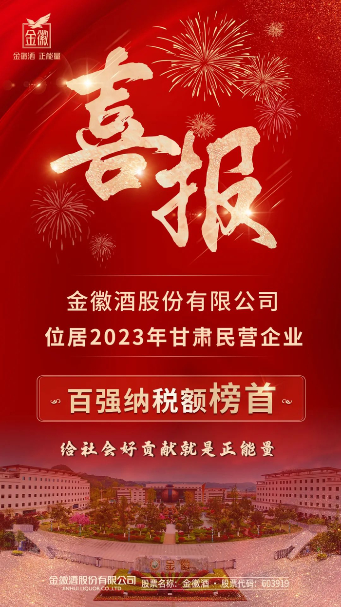 给社会好贡献就是正能量丨金徽酒位居2023年全省民企百强纳税额榜首