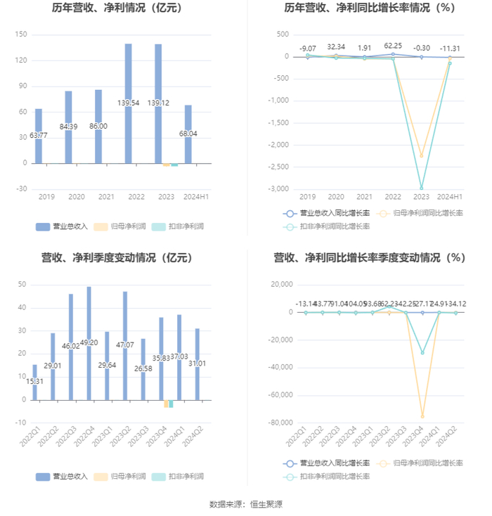 根据半年报,公司第二季度实现营业总收入31.01亿元,同比下降34.12%,环比下降16.27%;归母净利润216.0万元,同比下降55.82%,环比下降58.80%;扣非净利润-860.34万元,同比下降384.70%,环比下降300.97%。