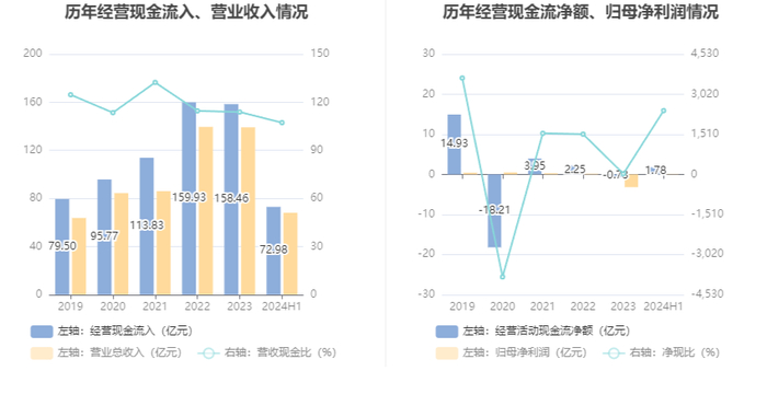 2024年上半年,公司营业收入现金比为107.27%,净现比为2402.37%。