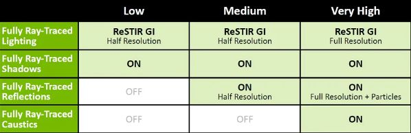 使用中画质设置进行测试,将全景光线追踪设置为低等,作为“简单光线追踪”选项,然后使用影视级画质预设,将全景光线追踪设置为“超高”,以获得最高图像质量。