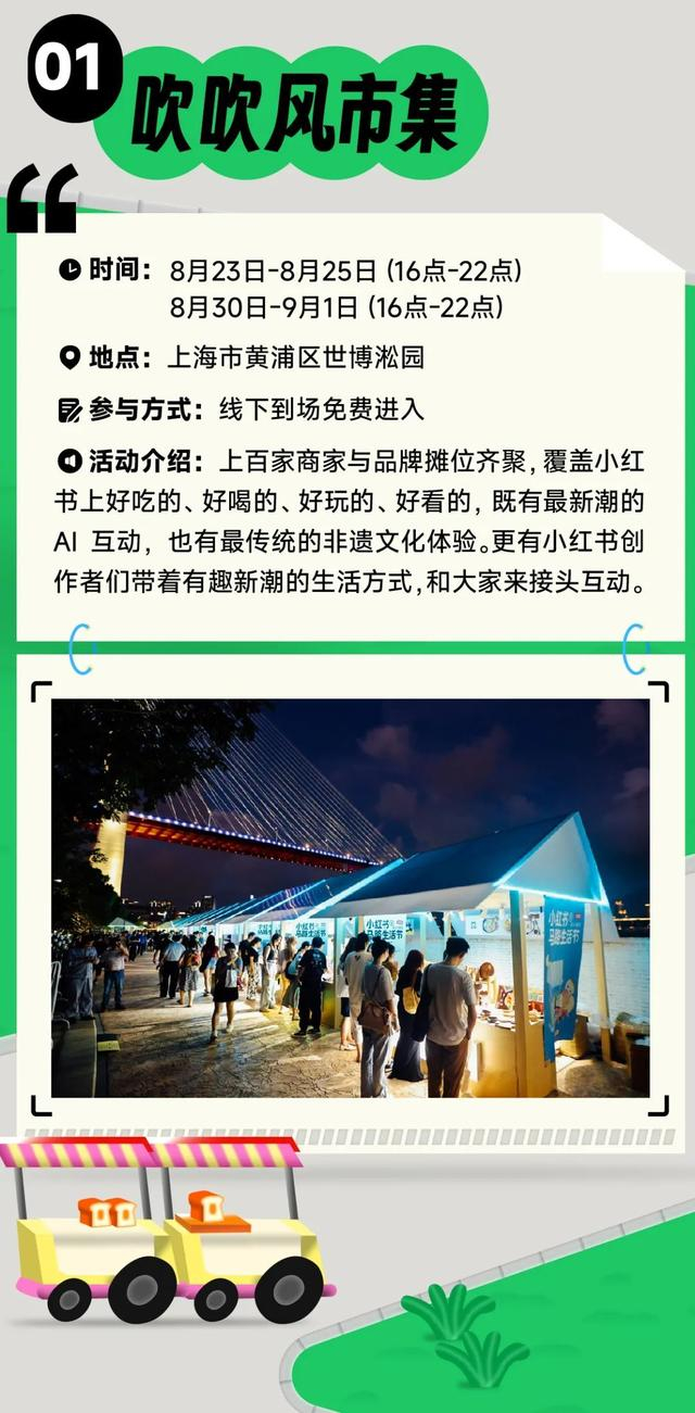 作为“上海之夏”七大标杆活动之一,小红书第二届马路生活节于8月23日至9月1日期间精彩呈现,一个中心化市集和5大主题小马路装饰一新,超过200场主题活动将在上海街头轮番“上演”。其中既有落日音乐会、抬头艺术展等文艺活动,也有时髦秀场、吹吹风市集、逛吃小马路等休闲娱乐,这些丰富多彩的活动,让人感受到上海多元、开放的城市文化。