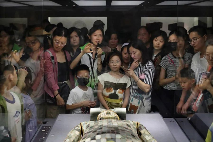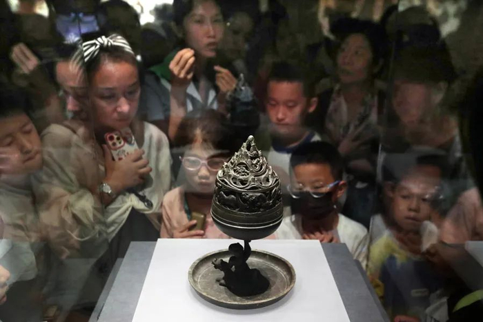 闵行博物馆宣教部主任徐迪介绍,《大汉未央——河北王室精品文物展》8月25日闭展,且暑假临近尾声,这几天来参观的客流络绎不绝,加上大家对《黑神话·悟空》中博山炉的关注,客流比平时增加20%。闵博在8月23日-25日开放夜场,满足公众参观需求。