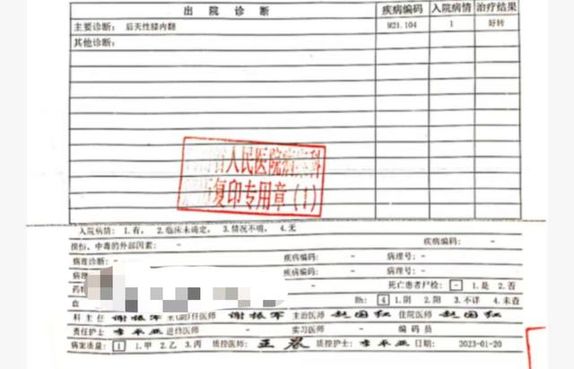 戴浩介绍,他于2023年年初在河南省人民医院办理入院并做了手术,并且“走了医保”。他的住院病案首页显示,他被“手足显微与创面修复外科病区”收治入院,被诊断为“后天性膝内翻”,医疗付费方式为“新型农村合作医疗”,主治医师和住院医师均为“赵国红”。
