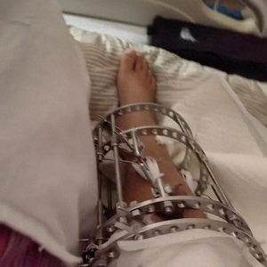 回到国内,她在医生的帮助下,取出了此前放入骨髓的“内钉”。但在这之后的一年多里,她都是带着外固定架生活。
