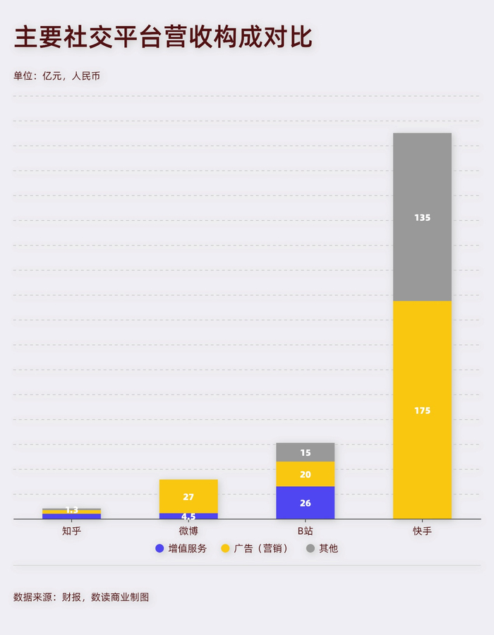 但增值服务挣不到钱也不是问题,快手也没有增值服务,视频内容都是免费,却可以做到更高的营收和利润,这个背后则是社交平台的商业模式变化。