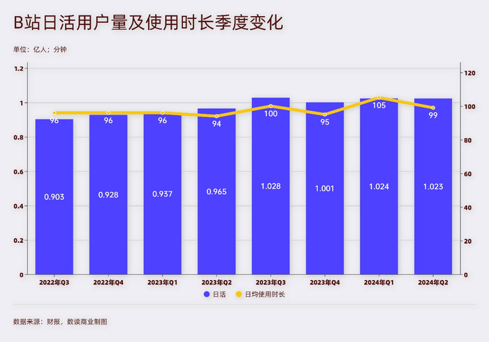 6月,微博日活用户数2.56亿。二季度,B站日活用户1.02亿,不到微博的一半。