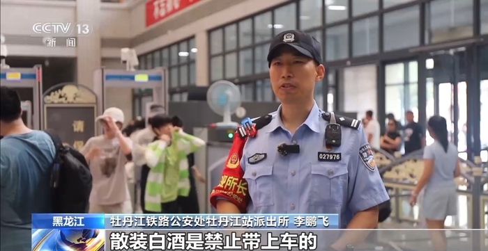 牡丹江铁路公安处牡丹江站派出所 李鹏飞:白酒在火车上是有限制携带的。散装白酒是禁止带上车的,而封闭好的原装白酒最多可以带6瓶,就是日常生活中我们遇到的,每瓶装500毫升。此外,未开封的红酒是可以带上火车的,但自制米酒和黄酒则是不允许的。同时我们经常接到旅客一些咨询电话,问海鲜一类的物品可不可以带上车。在规定中明确写到,作为食品且经封闭箱体包装的鱼、虾、蟹、贝、软体类水产动物可以携带,需妥善保管。