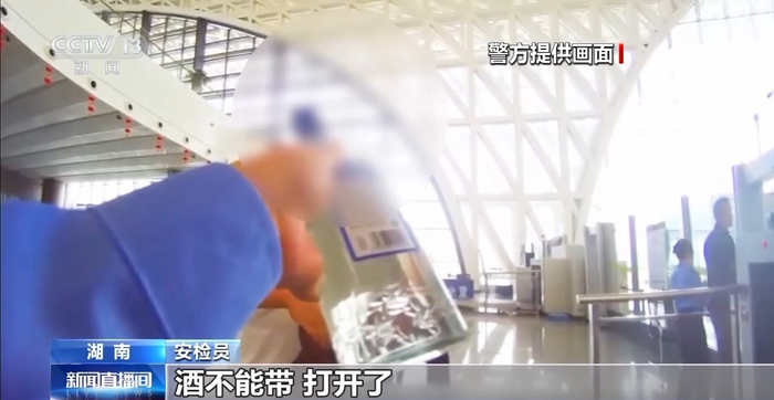 在湖南益阳南站,旅客卢先生携带散装白酒一瓶,在进站安检时,被车站安检员拦了下来。