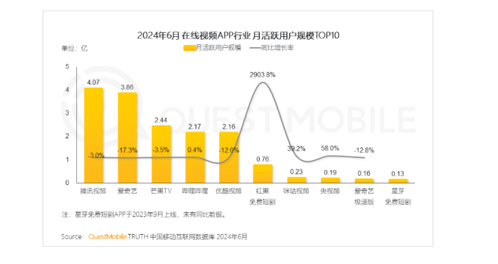 开源方面,先看用户增长。二季度B站月活用户3.36亿人,同比微增3.7%,用户体量基本已经接近天花板。不过这也不是B站一家的问题,从Questmobile发布的《2024年中国移动互联网半年报告》来看,包括腾讯在内的多个长视频平台中,除了爆火的免费短剧应用以及受奥运会带动的咪咕视频、央视频之外,B站已经是少数还在保持整体用户规模正增长的了。