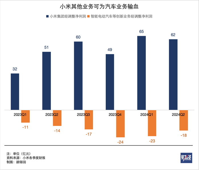 小米汽车单季亏损18亿元,但在汽车行业属于正常范围。同样做纯电产品的小鹏和极氪,2024年二季度的汽车交付量分别为30207辆和54811辆,净亏损分别为12.8亿元和18.1亿元,未公布二季报的蔚来2024年第一季度净亏损达到51.9亿元。