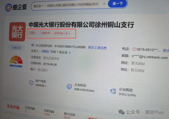 8月25日,湘财Plus检索了多个第三方企业信息查询平台发现,企查查、天眼查先后已将铜山支行的经营状态更新为存续/在业状态,不过天眼查仍标注该支行为经营异常,百度旗下的爱企查也将该支行标注为经营异常,且仍为吊销状态,尚未更新。