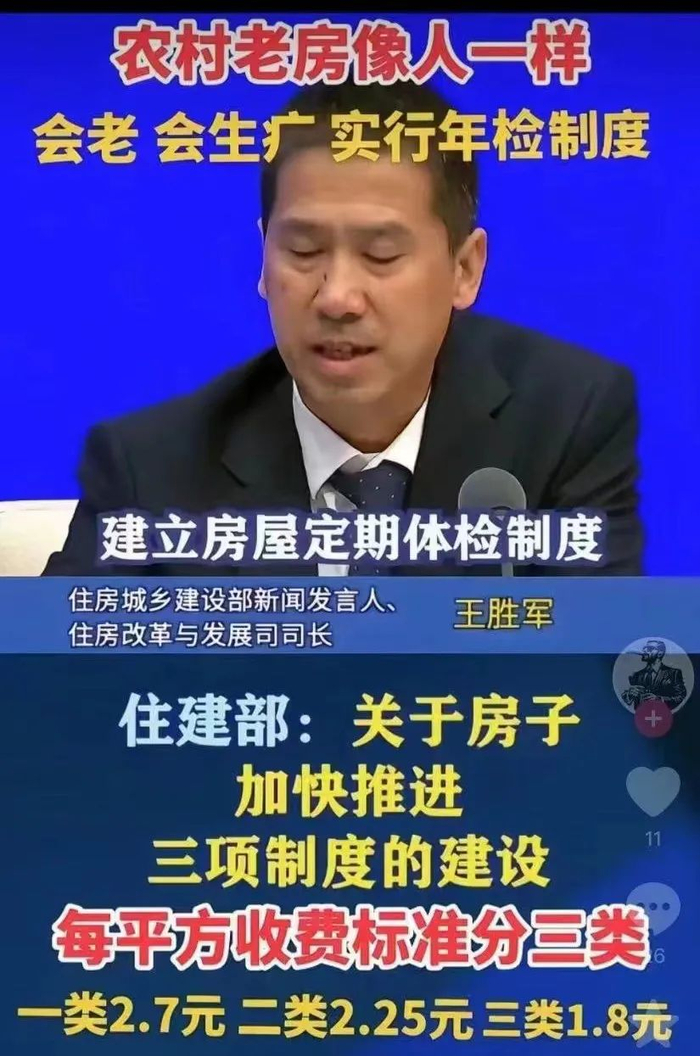 在近期的国务院政策例行吹风会上,住建部发言人提到,正在抓紧研究建立房屋体检、房屋养老金、房屋保险三项制度。