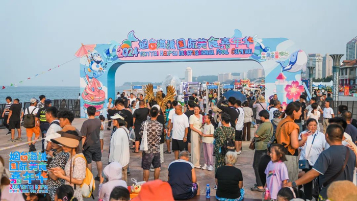 在滨海广场的打卡展区,一边是辽阔山海的视觉冲击,一边是万国美食的舌尖召唤:国际美食街区、烟火食集街区、品牌鲁菜展区、老字号餐饮美食展区、网红小吃区……人头攒动中,异域美食、齐鲁名吃,香气四溢;跨次元面基、趣味竞技等,带来满满“潮范儿”。现场游客无不沉浸其中、流连忘返。