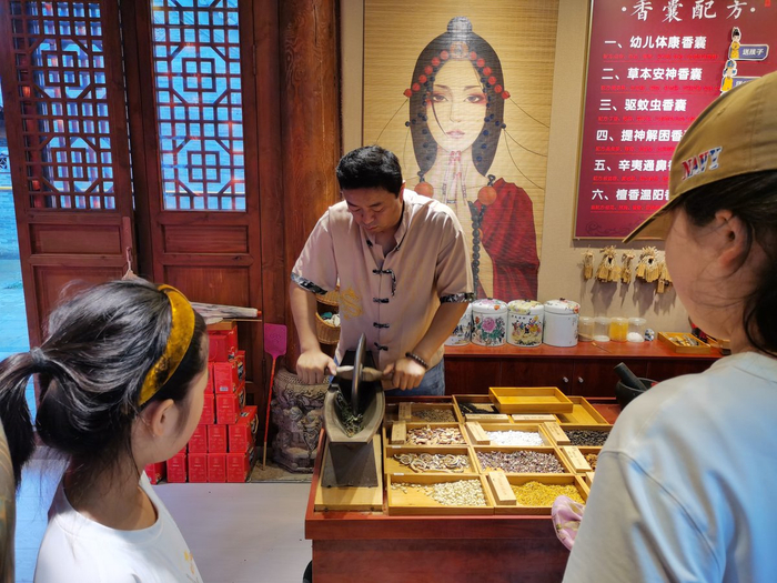 她介绍,卫城在不断丰富文旅业态过程中,特别注重引进与古城相匹配的体验类商业业态,挖掘“沉浸式+”的价值。游客可以深度体验扎染、中草药香囊制作、刻剪纸、印年画、捏面人等一批非遗传承类项目,也可以到玉米工坊、辣椒酱工坊、莜面工坊、酸奶工坊等作坊感受传统工艺的魅力。