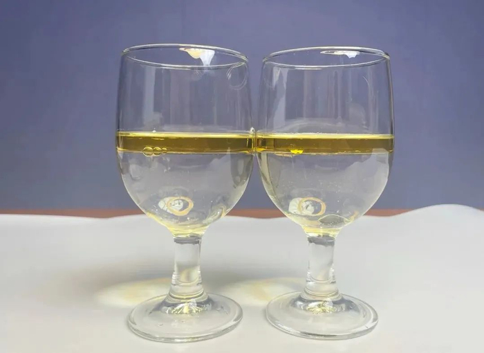 凑近看看,会很明显——放抽纸的杯子里,仍然有厚厚的一层油脂;而放吸油纸的杯子里,已经看不到明显的油层了。