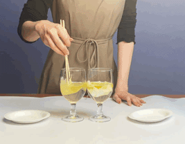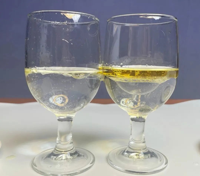 准备两杯一模一样的水油混合物,模拟平时汤汁上浮着油的情况。