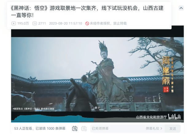 网友对游戏感兴趣,文旅部门自然也不会放过这份热度。早在去年,山西省文旅厅就发布了一条“集齐游戏取景地”的视频,介绍 了游戏中有哪些画面取材自山西的景点,视频目前的累计播放量已超过200万。