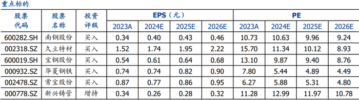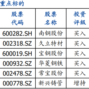 投资策略:本周商品整体处于震荡中,有些品种开始出现反弹,但幅度不大,黑色系产品也有一定程度的触底迹象。二季度产业链积压的工业品库存近期集中去库从而压力得以释放,尤其是汽车上游的板材受到的压力最为明显。后期我们主要观察财政支出的节奏,此前财政发力不大,地方政府在压缩杠杆,对经济的扩张没有起到支撑作用。七月底政治局会议强调了要完成今年既定的经济任务,表达了短期目标的达成对于衔接中长期发展目标同样非常重要。后期财政执行落地我们会密切关注,大概率较之前会有所加快。如果财政落地加快,目前阶段上游资源品行业产出缺口更为明显。钢铁板块大部分属于冶炼加工业,资源属性低于上游采掘业,盈利水平不佳,但目前部分公司已经处于价值低估区,如果后期财政落实加快,或供给端产业政策出台(本周工信部对于钢铁行业产能置换政策明显收紧),行业未来存在修复的机会(详见国盛证券华菱钢铁深度报告、南钢股份深度报告、宝钢股份深度报告)。继续推荐底部估值区域的华菱钢铁、南钢股份、宝钢股份,受益于油气、核电景气周期的久立特材,受益于管网改造及普钢盈利弹性的新兴铸管,受益于煤电新建及油气景气周期的常宝股份,以及受益于需求复苏和镀镍钢壳业务的甬金股份,受益于煤电新建及进口替代趋势的武进不锈。