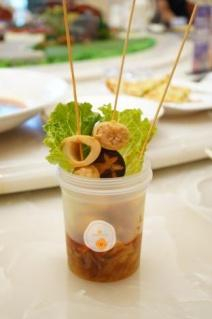 捞汁小海鲜搭配上酒店自制饮品