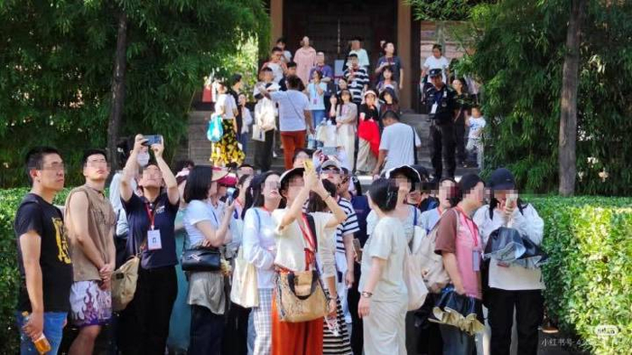 8月25日,上游新闻记者采访了在玉皇庙担任文保志愿者的小柯(化名),她8月24日晚在社交平台上发布了多张图片,可以看到玉皇庙已经出现“打拥堂”情况。她也感叹:“玉皇庙游客量井喷!我感动得哭了……”