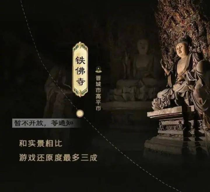 在“跟着悟空游山西”主题旅游路线中,2019年10月被确定为第八批国保单位的高平铁佛寺备受关注,其“和实景相比,游戏还原度最多三成”的简介,加重了游客对这个景点的好奇心,可是“暂不开放等通知”的标注,让人感到很遗憾。
