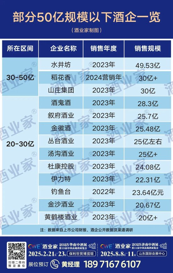 50亿不仅是白酒企业规模化发展的分水岭,同时也是支撑酒业百亿阵营扩容的中坚力量。