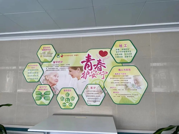 朱志刚所在的科室,预留出十张床位用来收留安宁疗护患者,如果有空出的床位,平常也用来收治普通肿瘤患者,同时科室也设置了关怀室,满足临终患者家庭决策需要。