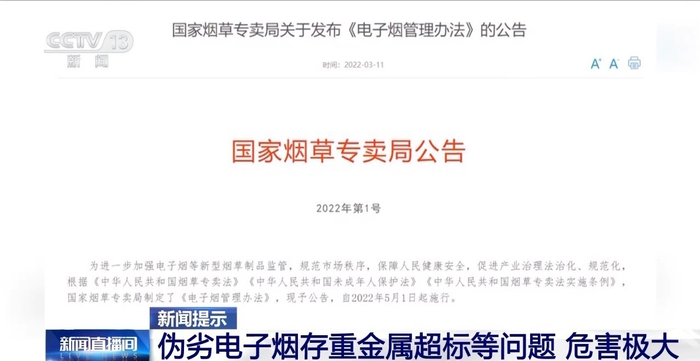 伪劣电子烟存重金属超标等问题 危害极大