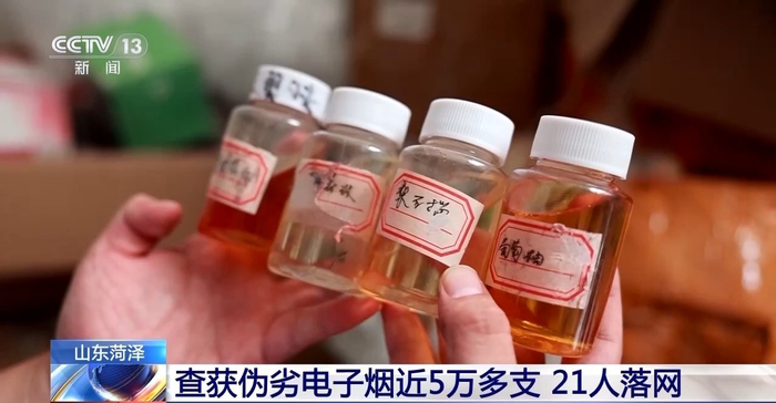 曹县公安局副局长 回佩强:我们五个抓捕小组,在五天时间内,兵分多路,在河北、河南、广东等地,共抓获了十几名在网上销售伪劣电子烟的犯罪嫌疑人,随后又在广东惠州市,捣毁了一个制烟窝点。