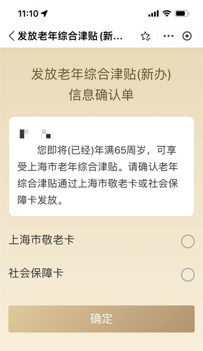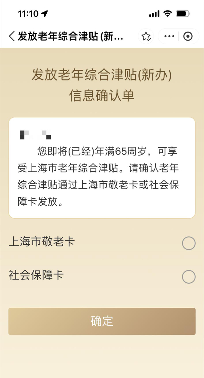 为进一步方便老年人领取老年综合津贴,自今年5月1日起,上海老年综合津贴实行“免申即享”(←点击查看),符合条件的老年人无需申请,仅需事先选择通过何种渠道(即通过上海市敬老卡或社会保障卡)领取即可享受津贴。