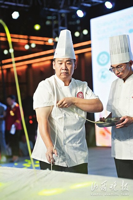 其中,面食技艺秀将传统非遗技艺与体育竞技相融合,选手们进行了刀削面投篮、剔尖钻铜钱、双柄刀拨面、龙须拉面、吹面气球、一根面等面食技艺表演。舞面技艺秀展示了扯面舞、面手绢、大刀切面、襄垣手工大把拉面等制作技艺,选手们边舞边制作非遗面食,引得现场观众叫好。花样面食秀现场更是里三层外三层围满了人,面点大师刘志娟等展示的双擀饺子皮、墩烧麦皮、推莜面等拿手绝活让人连连惊叹技艺的高超。现场,中国烹饪导师刘强、资深级注册中国烹饪大师王俊如、注册中国烹饪大师杭伟州等业内大师为参赛选手裁判、点评。