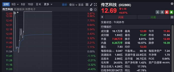 苹果概念、无线耳机、AI手机PC、智能穿戴等消费电子细分板块也强势拉升,传艺科技、翔腾新材、英集芯等涨停或涨超10%。