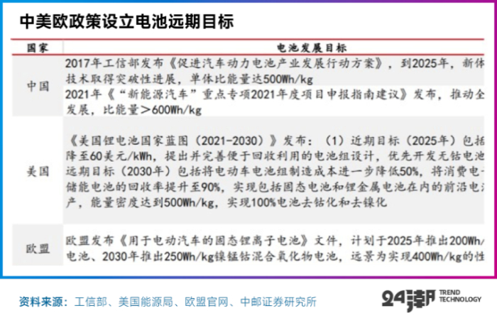 为了在抢占下一代技术风口,中美欧等均通过发布相关政策,设立了电池远期战略目标,一场全球化竞争已不可避免。