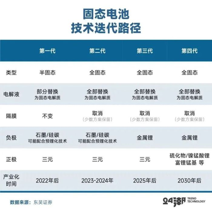 东吴证券分析认为,比如宁德时代重点布局的硫化物全固态路线,尽管已有高能量密度的固态电池实验样本,但距离实现商业化可能仍需5年以上时间。