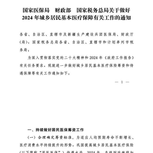 《关于做好2024年城乡居民基本医疗保障有关工作的通知》政策解读