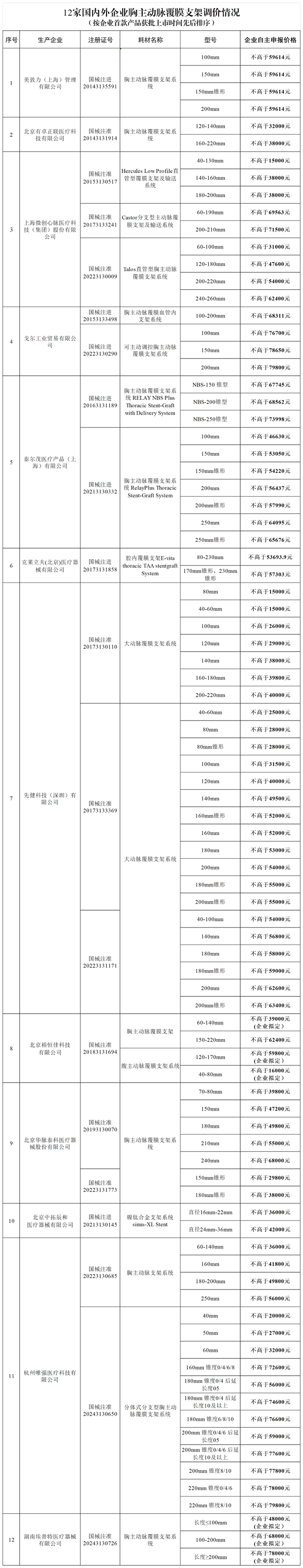 最高报价不超过8万元!12家企业重新制定胸主动脉支架价格