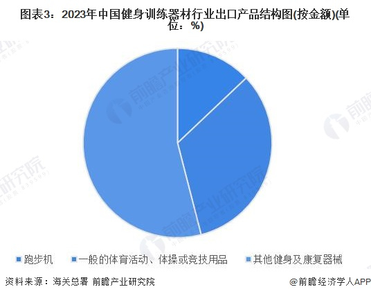 从进口产品结构来看,2023年,中国健身训练器材行业主要进口产品为一般的体育活动、体操或竞技用品(包含护腕、护具等体育活动用品),占健身训练器材进口额比重为58%。
