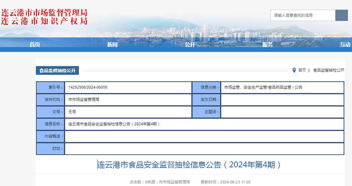 江苏省连云港市食品安全监督抽检信息公告 (2024年第4期)