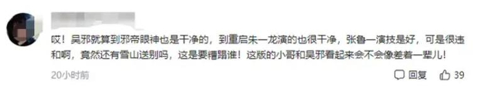 而吴邪的扮演者,这一次由张鲁一挑起大梁。前有《沙海》中秦昊版的吴邪、《重启》中朱一龙版的吴邪,这一次张鲁一虽说同样是演技派,却让观众们有些担忧。因为吴邪在原著中的年龄设定是33岁,而张鲁一40+的年纪让人觉得会有违和感。特别是与新人演员张康乐饰演的“小哥”对戏时,网友担心,“会不会看起来差了一辈”。