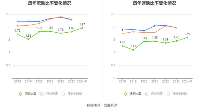2024年上半年,公司流动比率为1.97,速动比率为1.59。