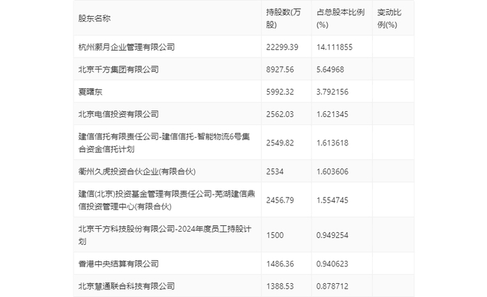 半年报显示,2024年上半年末公司十大流通股东中,新进股东为北京千方科技股份有限公司-2024年度员工持股计划,取代了一季度末的华夏能源革新股票型证券投资基金。在具体持股比例上,建信(北京)投资基金管理有限责任公司-芜湖建信鼎信投资管理中心(有限合伙)、香港中央结算有限公司持股有所下降。