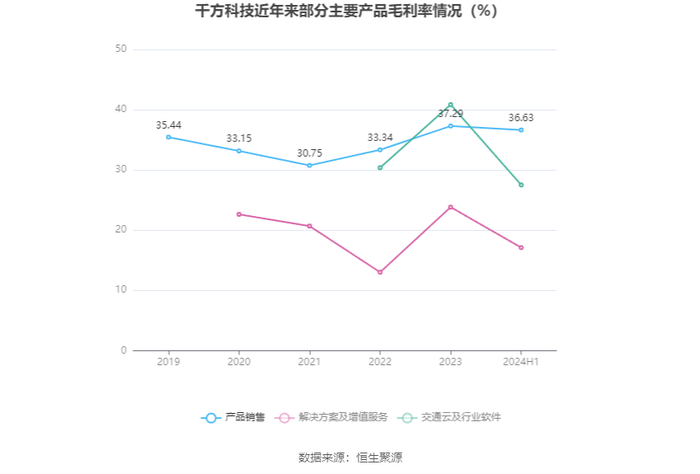 分产品看,产品销售、解决方案及增值服务、交通云及行业软件2024年上半年毛利率分别为36.63%、17.11%、27.51%。