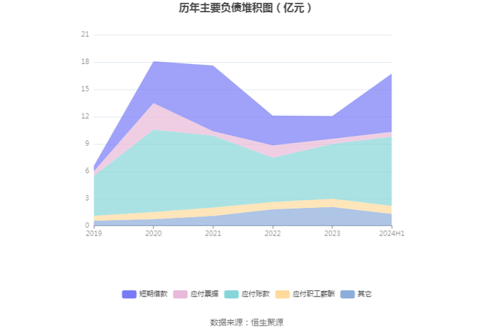 负债重大变化方面,截至2024年上半年末,公司短期借款较上年末增加155.12%,占公司总资产比重上升9.25个百分点,主要系本期营业收入增长相应使应收账款和存货增加,导;应付账款较上年末增加26.35%,占公司总资产比重上升1.97个百分点;一年内到期的非流动负债较上年末减少96.52%,占公司总资产比重下降1.51个百分点;应交税费较上年末减少48.97%,占公司总资产比重下降0.59个百分点。