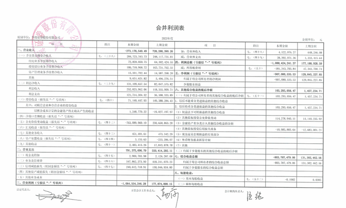 但是,华源证券2023年未能交出一份让市场满意的成绩单。对照合并利润表,华源证券2023年营业收入-2.73亿元,同比下降137.51%;实现归母净亏损9.07亿元,同比下降798.59%。