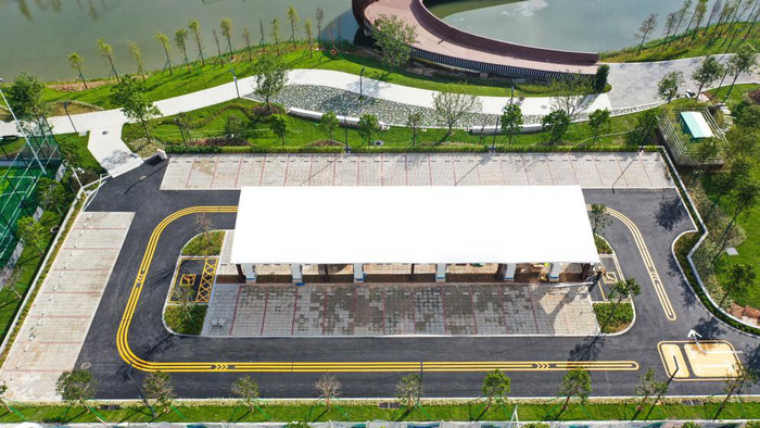 据悉,公园配置了1个标准型篮球场、1个5人制足球场、儿童游乐园、慢跑道等运动游乐设施。公园专门设有野营草坪和亲水栈道,可为居民提供露营、音乐会、户外电影等户外活动空间。公园还配置了一系列的便民服务设施,有提供服务的服务中心,洁净舒适的公共厕所,沿线设置的休闲座椅,以及宽敞整洁的停车场,为居民打造舒适温馨的游园环境。